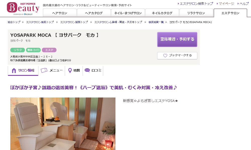 大阪玉造駅近くの『ヨサパーク モカ(YOSAPARK MOCA)』はハーブ温浴で女性の身体を芯から温め支給までぽかぽかになります。