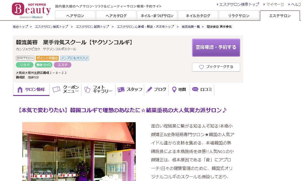 大阪鶴橋の『薬手骨気(ヤクソンコルギ) 』は韓国式オリジナルコルギによる小顔矯正&全身経路マッサージ専門のサロンとして高い評価がされています。